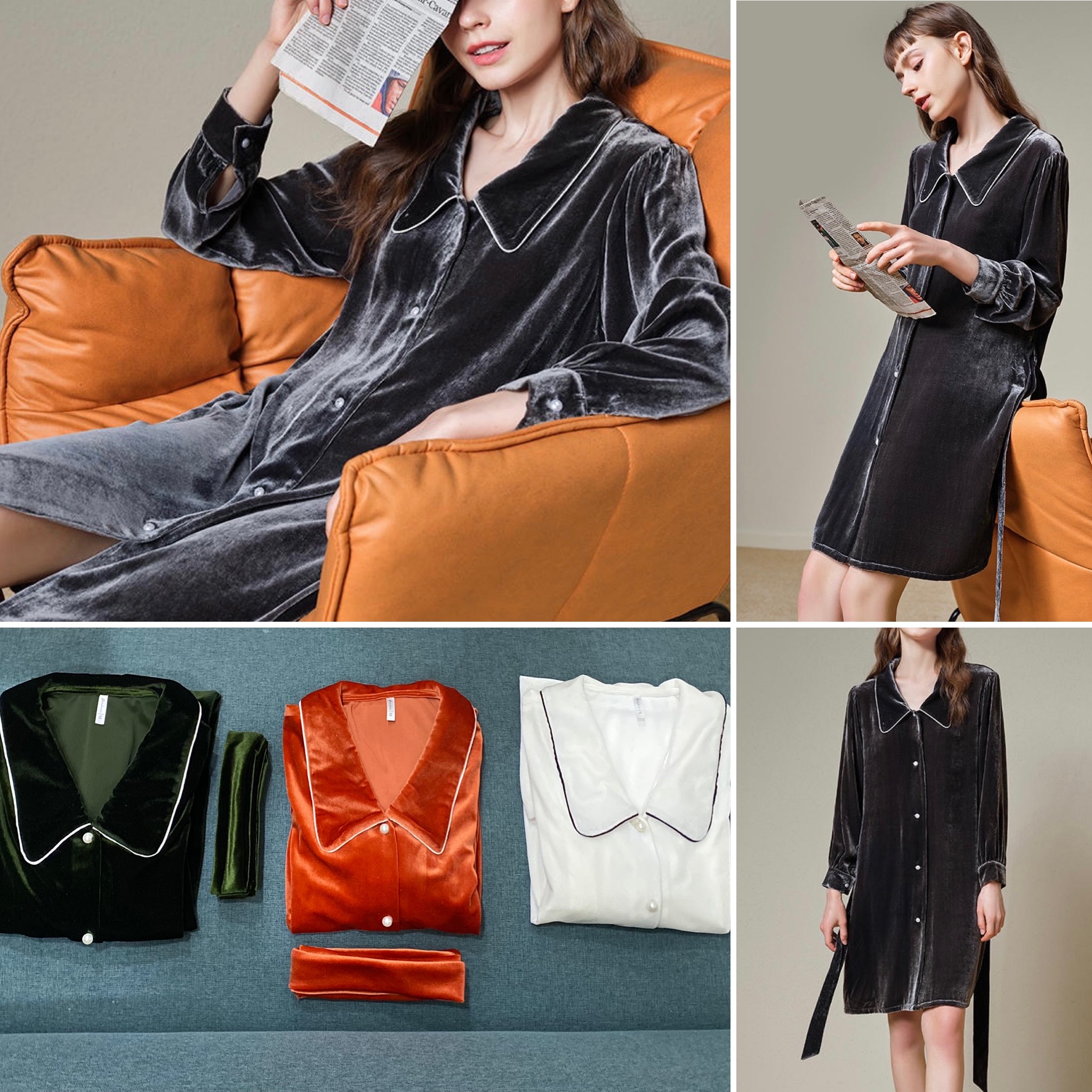 Ellen-Elegant Velvet Silk Shirt Dress-FORHNVVSD1